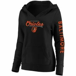 Women’s Fanatics Branded Black Baltimore Orioles Victory Script Crossover Neck Pullover Hoodie