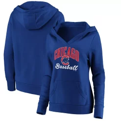 Women’s Fanatics Branded Royal Chicago Cubs Sport Resort Script Washed Tie Front V-Neck T-Shirt