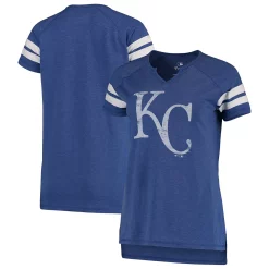 Women’s Fanatics Branded Royal/White Kansas City Royals Tri-blend Wordmark Notch Neck T-Shirt