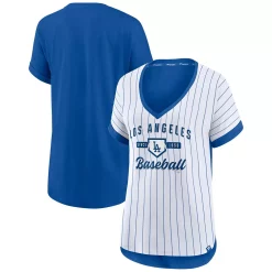 Women’s Fanatics Branded White/Navy Milwaukee Brewers Iconic Noise Factor Pinstripe V-Neck T-Shirt