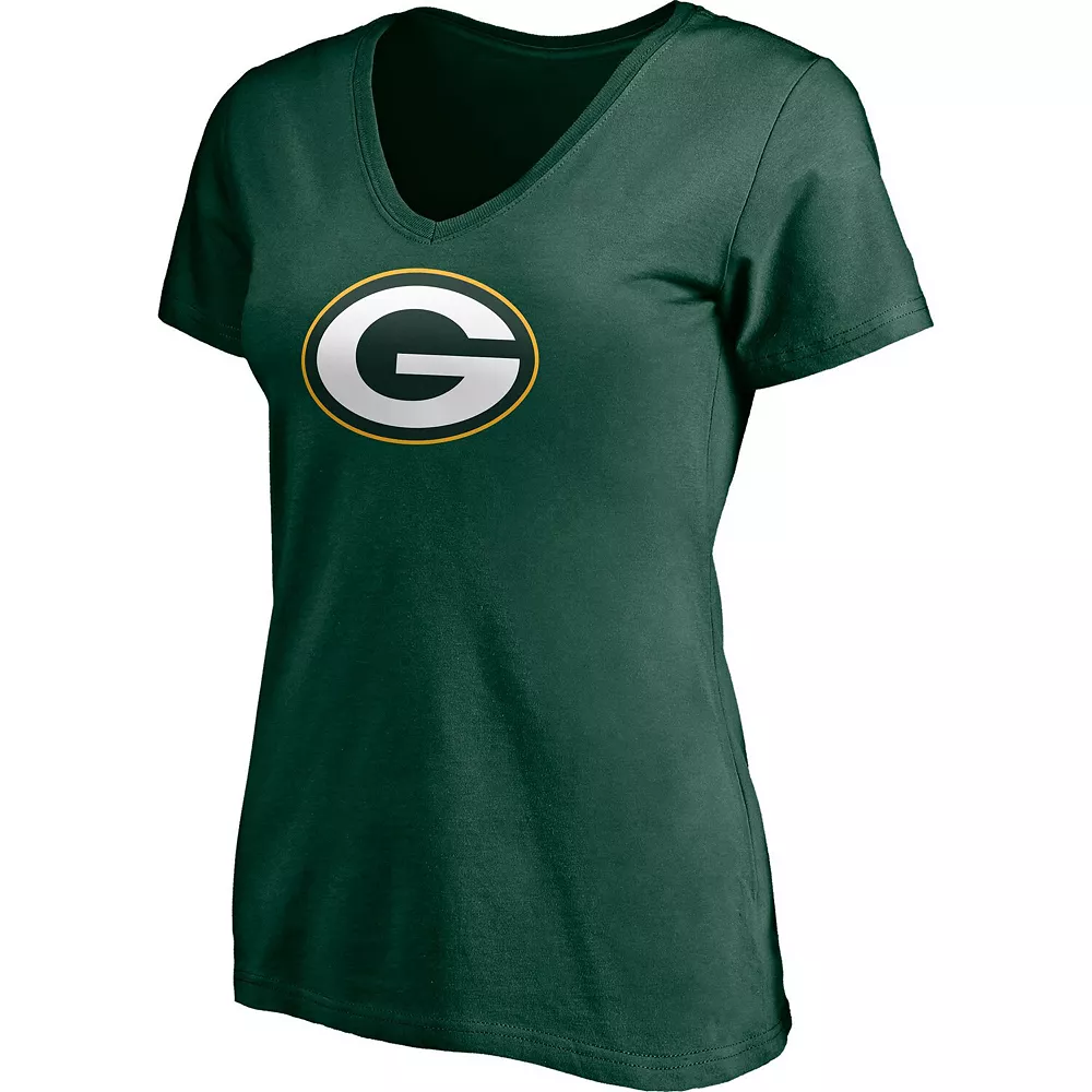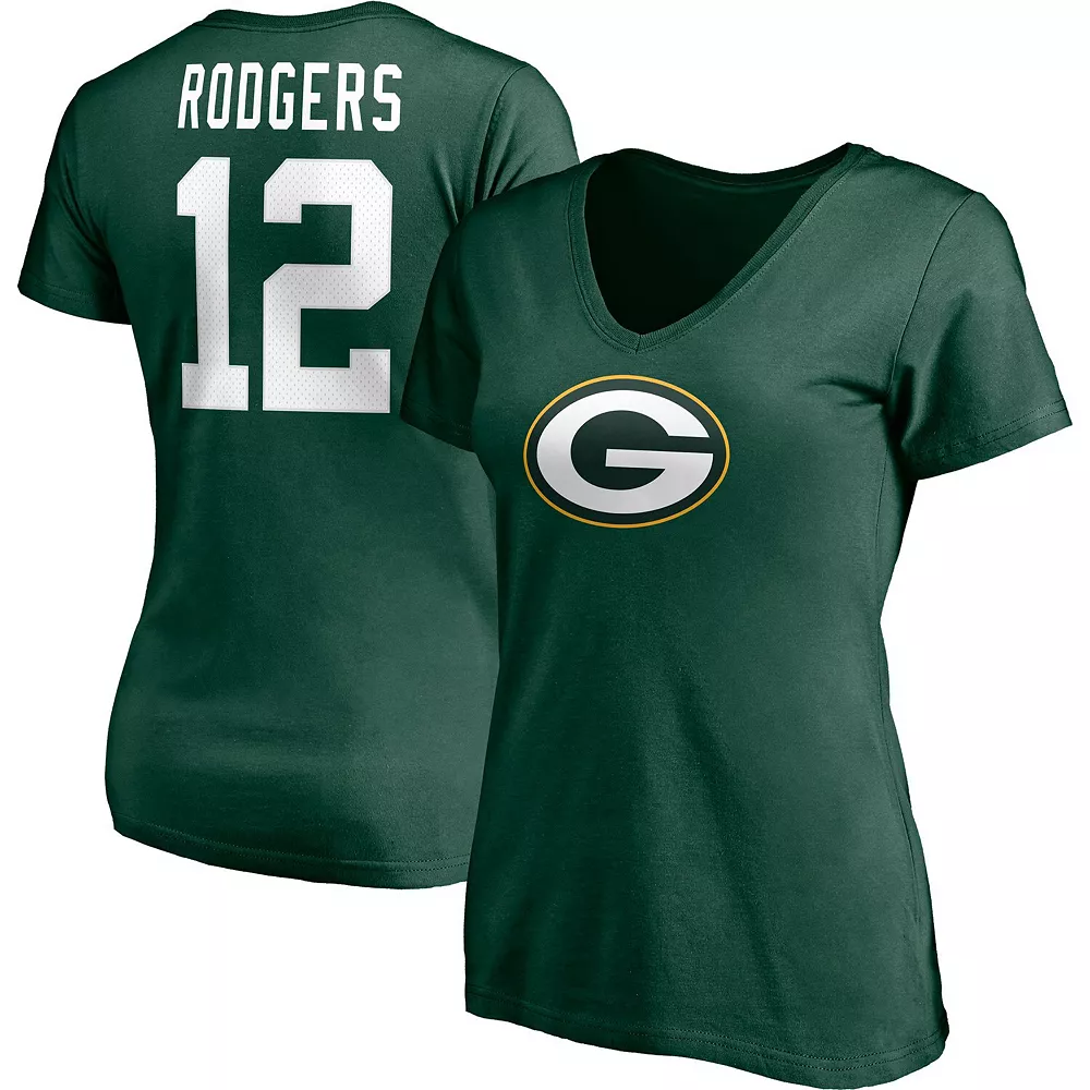 Let your tee show everybody which Green Bay Packers player you most look forward to seeing on the field with this Aaron Rodgers Player Icon Name and Number T-shirt from Fanatics Branded. It features the Green Bay Packers logo printed across the front and Aaron Rodgers graphics with faux mesh numbers on the back. The cotton fabric will also give this V-neck shirt a lightweight, comfortable feel.