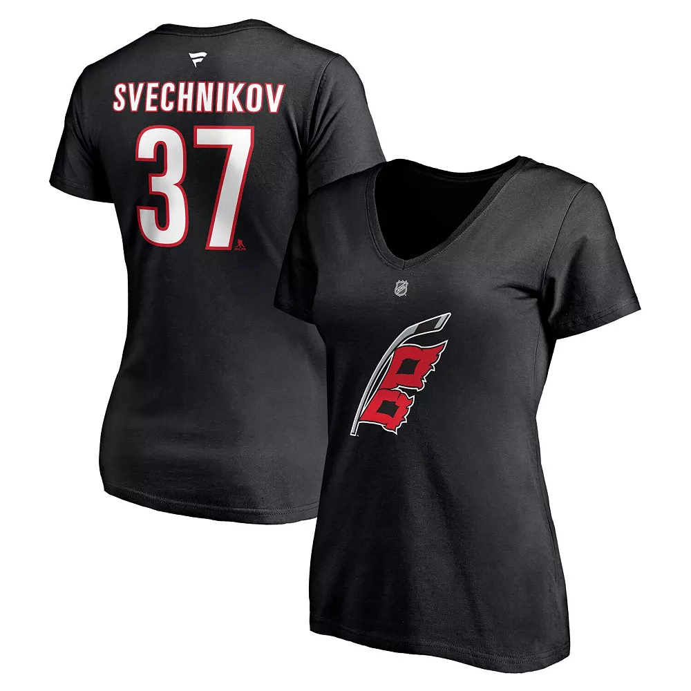 Andrei Svechnikov is your favorite player, and for good reason. Show him your support by grabbing this Carolina Hurricanes Alternate Authentic Stack Name & Number V-Neck T-Shirt from Fanatics Branded. It features bold Carolina Hurricanes and Andrei Svechnikov graphics, so no one will be able to question where your allegiance lies every time you rock this sweet gear.