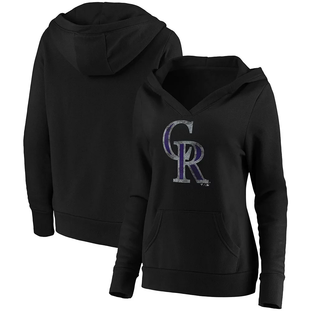 Mix team spirit and style with this Colorado Rockies Core Team Crossover V-neck pullover hoodie. This Fanatics Branded hoodie features an eye-catching V-neck design and distressed graphics. Stay warm in Colorado Rockies style with this fashionable hoodie.