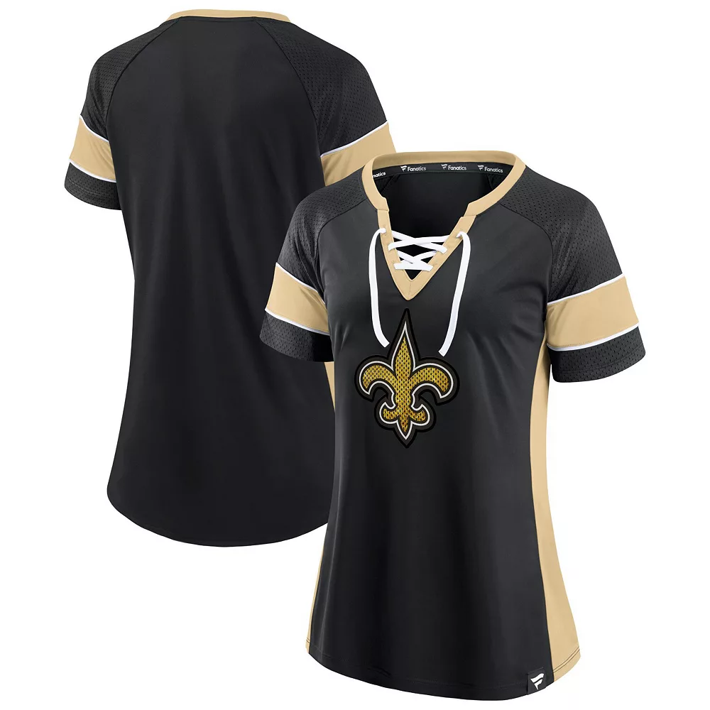 Upgrade your game day look with a first-rate pick by grabbing this New Orleans Saints Team Draft Me Lace-Up V-Neck T-shirt. This Fanatics Branded top features a lace-up neckline that’s sure to highlight your team fandom with flair and raglan sleeves for ease of movement. You’ll be ready to push the New Orleans Saints through to a hard-earned victory anytime you sport this bold top.