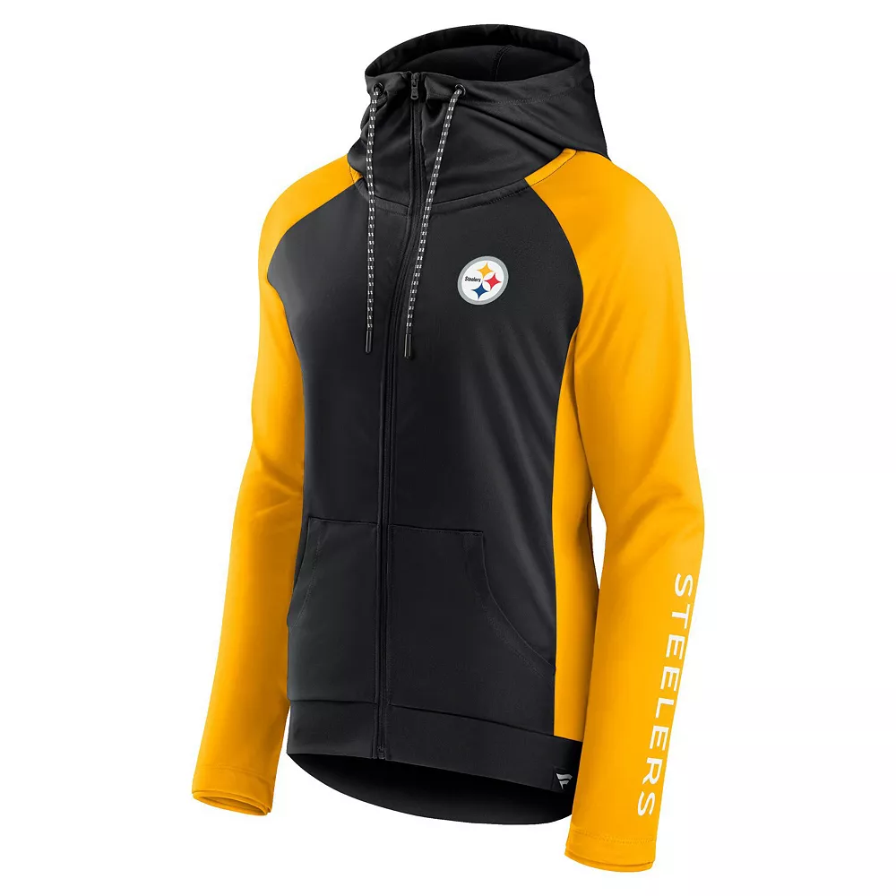 This End Around full-zip hoodie from Fanatics Branded is a great way to show your devotion to the Pittsburgh Steelers in inclement weather. Featuring a scuba hood, drawstrings and a zipper that extends to the chin, this jacket keeps you protected from the elements. In addition, the raglan sleeves allow for ease of mobility, and the two front pockets provide a warm haven for your hands on cold Pittsburgh Steelers game days.