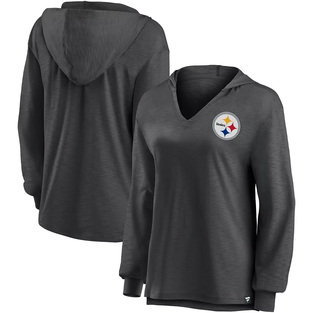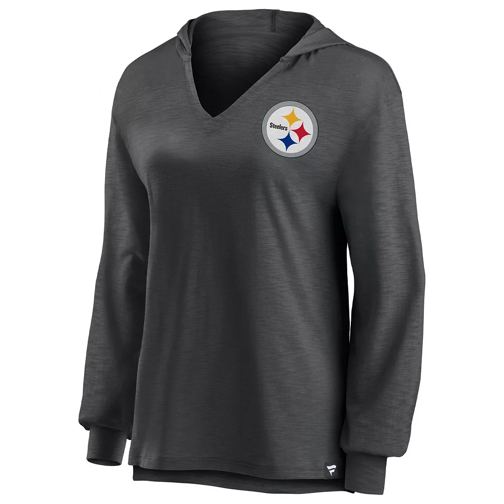 This lightweight Jumper hoodie from Fanatics Branded is a great way to show your devotion to the Pittsburgh Steelers in cooler weather. The V-neckline and droptail hem give it a comfortable, cozy look that can be worn anywhere. When you’re cheering on the Pittsburgh Steelers, this pullover lets everyone know your fandom is no joking matter.