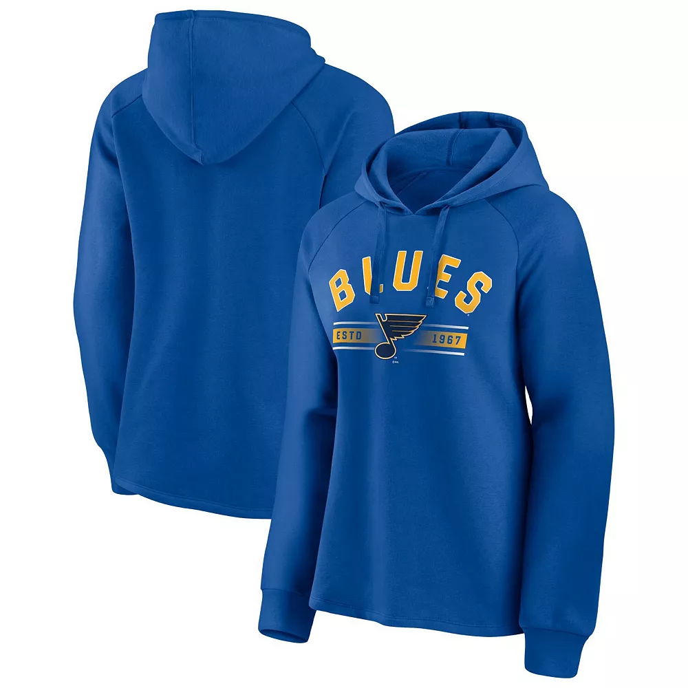 Read cooler temperatures like your St. Louis Blues read their opponents and layer up with this Perfect Play hoodie from Fanatics Branded. It features a bold St. Louis Blues graphic and wordmark printed across the chest as well as raglan sleeves that provide added comfort and ease of movement. Grab this pullover, put your hood up and enjoy coverage that lasts well after the game comes to a close.