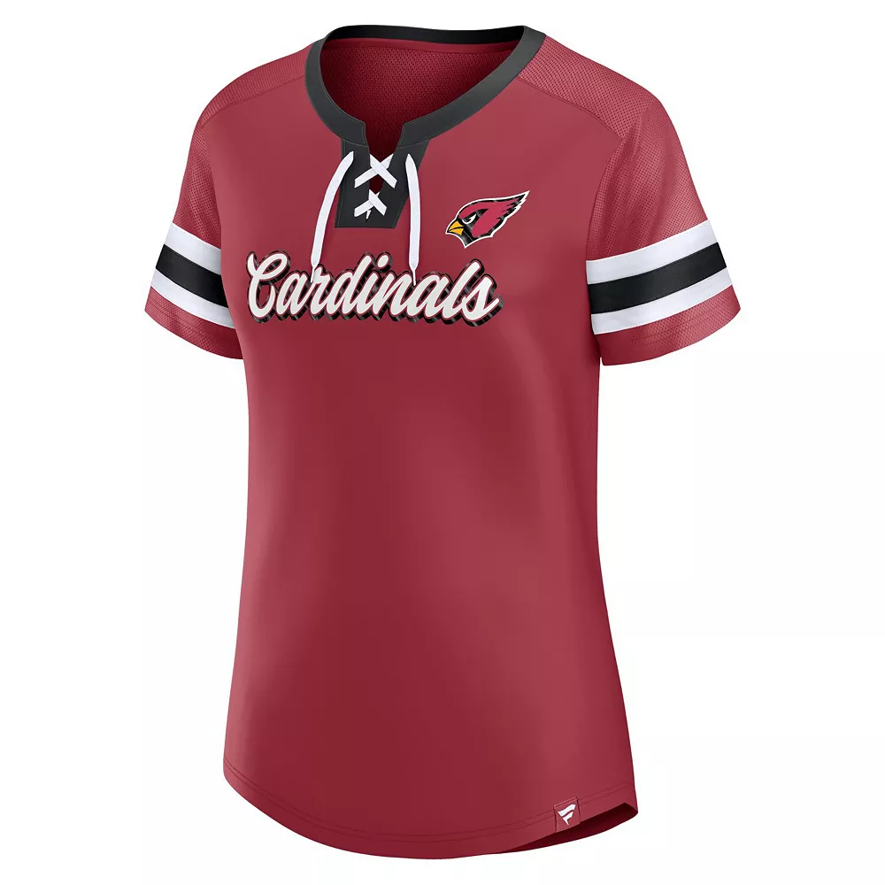 Elevate your style on game day by sporting this Arizona Cardinals Original State T-shirt from Fanatics Branded. It features a chic lace-up neckline and sleeve stripes that coordinate with the team’s name across the front. Mesh fabric also gives this Arizona Cardinals tee a breathable feel for more comfortable wearing during warmer weather.