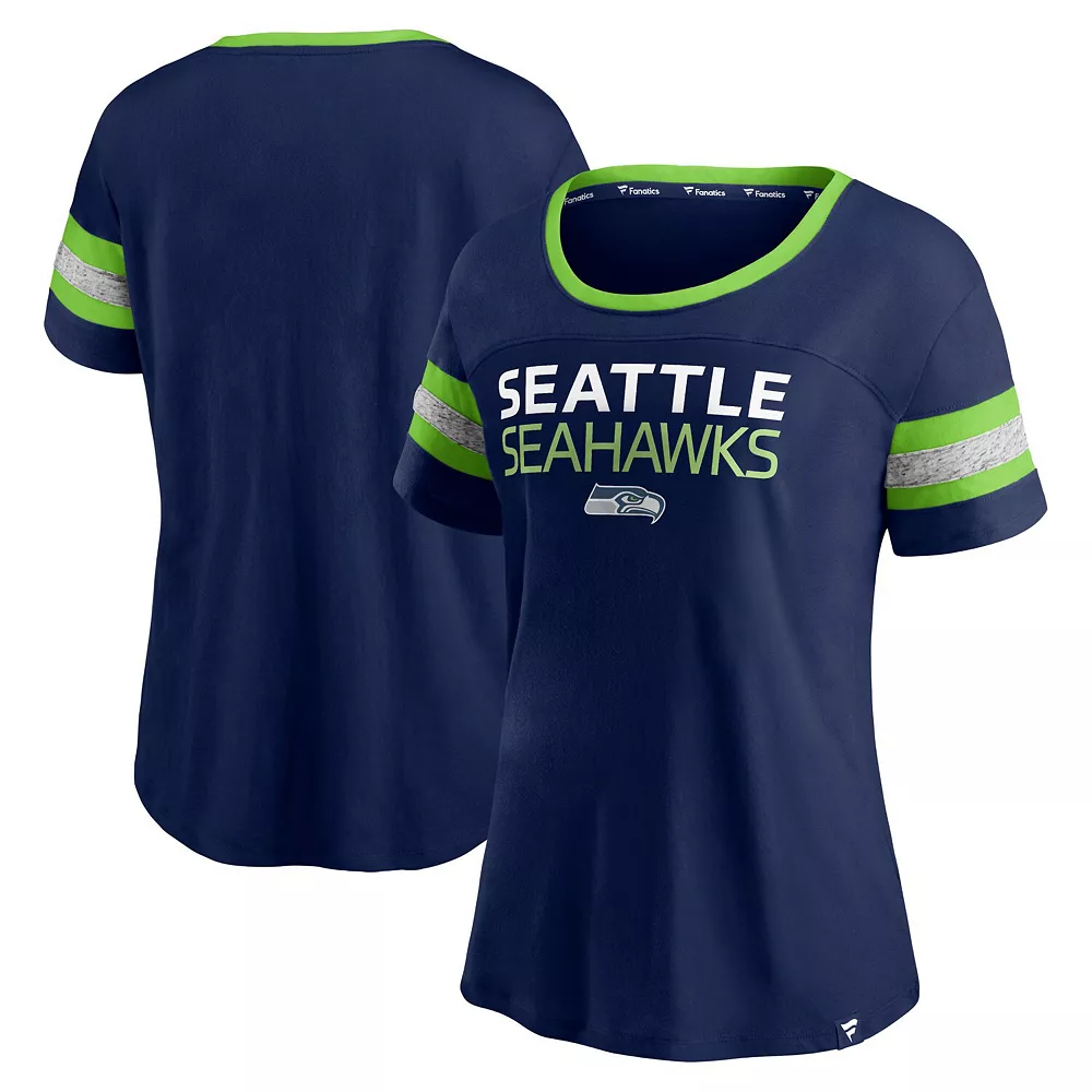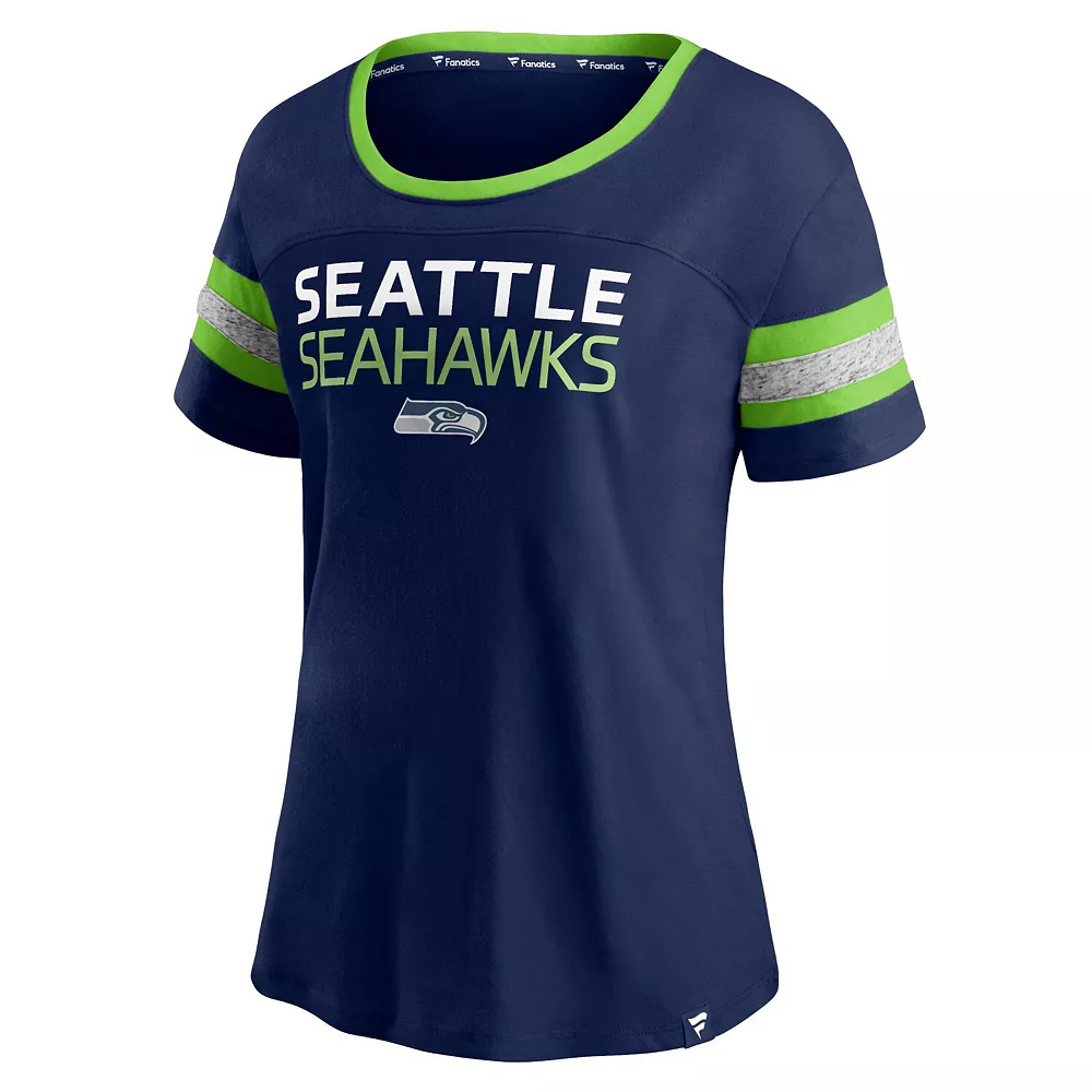 Get an undeniable look ahead of the next Seattle Seahawks kickoff with this Clean Cut Stripe T-shirt from Fanatics Branded. This tee features team graphics across the chest, and the striped sleeves help it to stand out from the rest of your Seattle Seahawks tops. Pair your favorite team cap with this tee for a complete game day look.