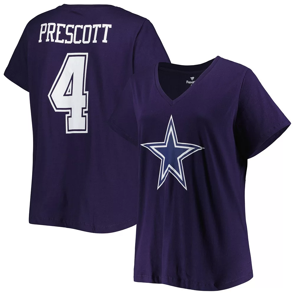 With this Dak Prescott Name and Number T-shirt by Fanatics Branded, your Dallas Cowboys fandom is undeniable. The V-neck cut, soft fabric and classic tee construction make this top a for-sure game day favorite. Plus, the bold Dak Prescott graphics flex your team spirit in true Dallas Cowboys fashion.