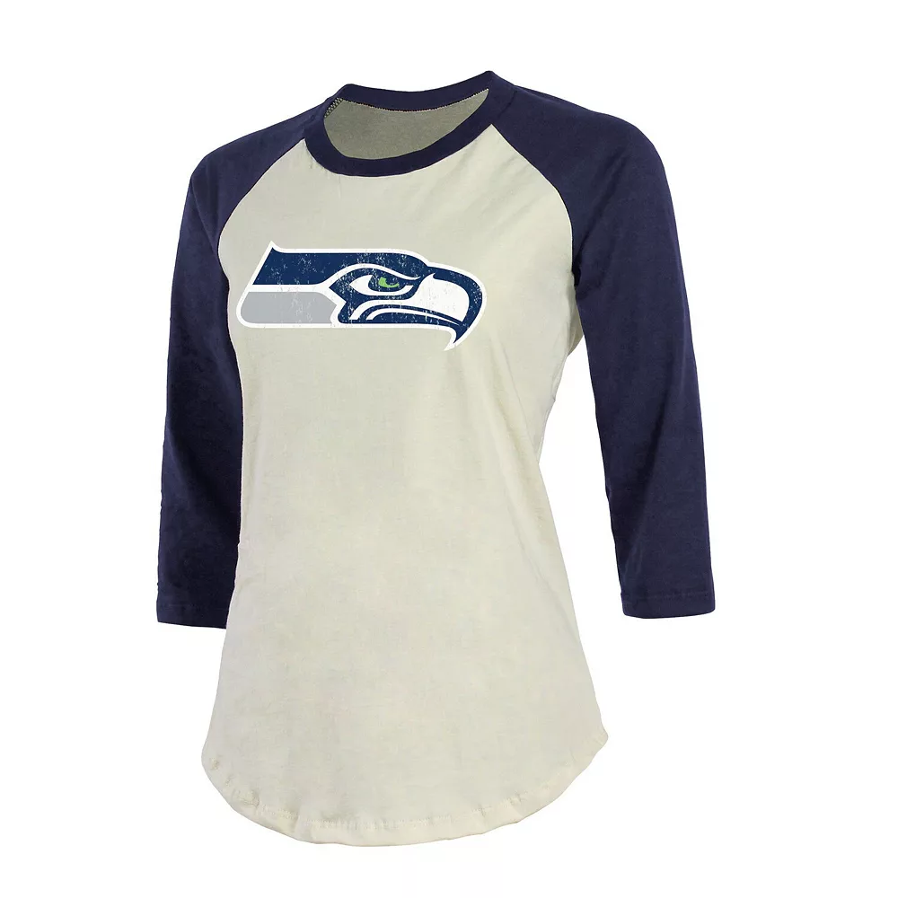You love to look your absolute best whenever you watch the Seattle Seahawks play. Now you can add a cool and classic touch to your game day ensemble by wearing this DK Metcalf Vintage Player Name and Number raglan 3/4-sleeve T-shirt from Fanatics Branded. The distressed Seattle Seahawks graphics on the front and back of this tee will help you highlight your unwavering loyalty to the team.