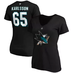 Your die-hard loyalty to the San Jose Sharks is unmatched by anyone. Now you can put your fandom over the top when you get this Erik Karlsson Authentic Stack Name and Number V-neck T-shirt. This Fanatics Branded tee features distinctive San Jose Sharks graphics on the front and back, perfect for wearing around town.