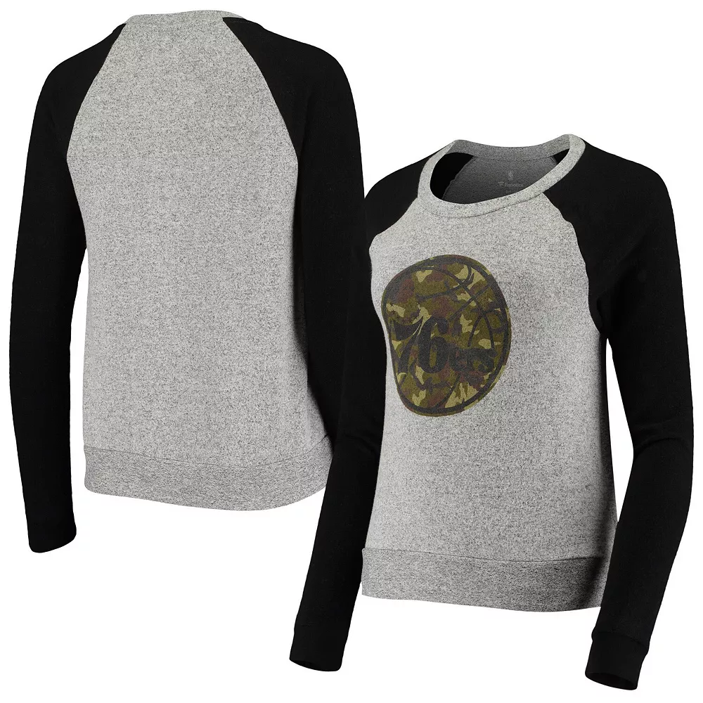 Complement next level Philadelphia 76ers spirit with this comfy Prestige Camo raglan crew neck sweatshirt exclusively from Fanatics Branded. This on-trend Philadelphia 76ers sweatshirt features signature team graphics, ideal for a chilly day out or cozying up for a highlight reel.