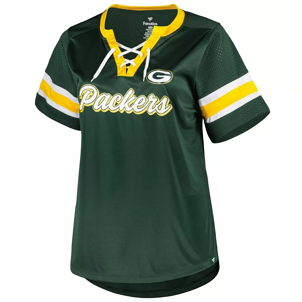 Gear up in Green Bay Packers style with this Original State T-shirt. It features a unique lace-up neck and sewn-on stripes for added detail. The sleek team graphics across the front make this Fanatics Branded tee a must-have for any Green Bay Packers game.