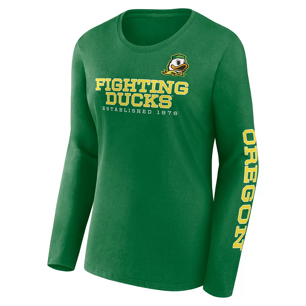 Make sure to let out a Oregon Ducks rally cry in style with this Fanatics Branded 2-Hit T-shirt. It features striking graphics on the chest to let everyone know you root for the Oregon Ducks loud and proud. Plus, the soft fabric, long sleeves and rounded droptail hem bring comfort and coverage to your game days.