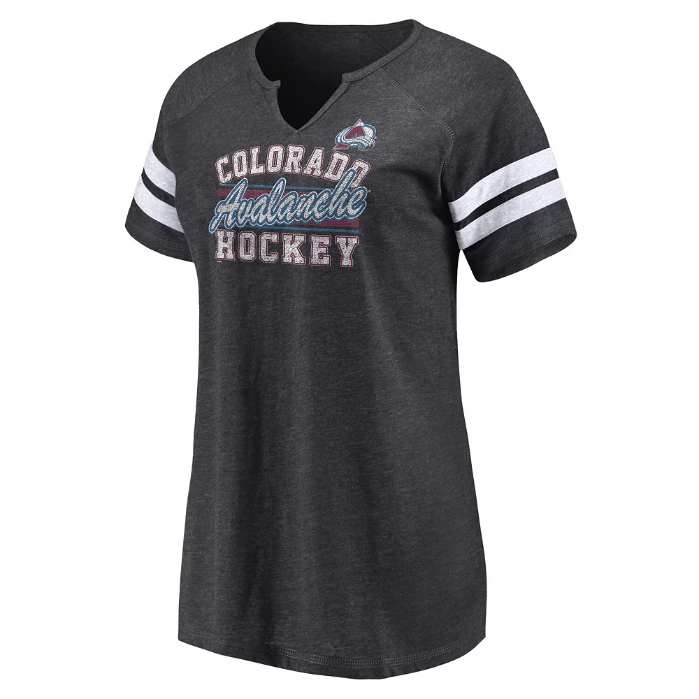 Gear up for the next Colorado Avalanche game with this Quick Out Notch Neck T-shirt from Fanatics Branded. The raglan sleeves offer enhanced maneuverability, and the distressed printed graphics create a vintage look that turns heads. The soft blended material makes it a go-to top for puck drop.