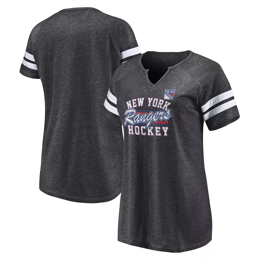 Gear up for the next New York Rangers game with this Quick Out Notch Neck T-shirt from Fanatics Branded. The raglan sleeves offer enhanced maneuverability, and the distressed printed graphics create a vintage look that turns heads. The soft blended material makes it a go-to top for puck drop.