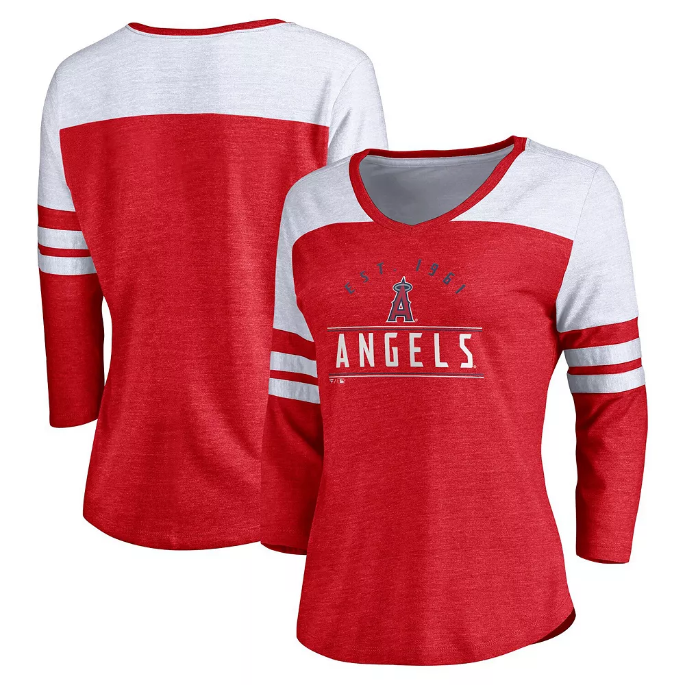Put eyes on your Los Angeles Angels fandom in this striking League Leader V-Neck T-shirt by Fanatics Branded. It features baseball-inspired three-quarter sleeves and eye-catching Los Angeles Angels graphics for a bold look. In addition, the super-soft tri-blend fabric adds extra comfort to this stylish game day option.