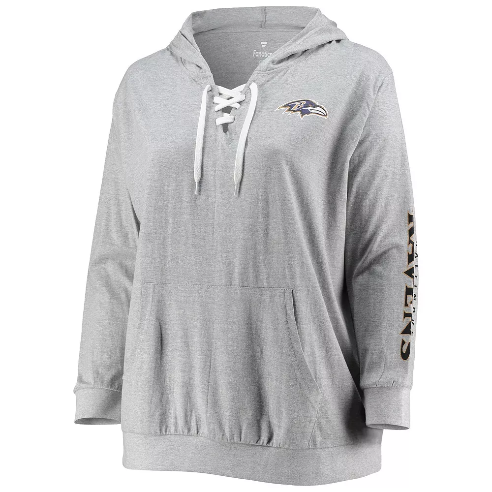 Fight off the cold like a loyal Baltimore Ravens fan when you slip on this bold Lace-Up pullover hoodie from Fanatics Branded. The dynamic team graphics on the front of this top will be a testament to your unwavering dedication each time you reach for it! Take on game day in true Baltimore Ravens fashion with this comfortable pullover.