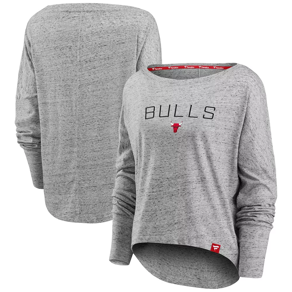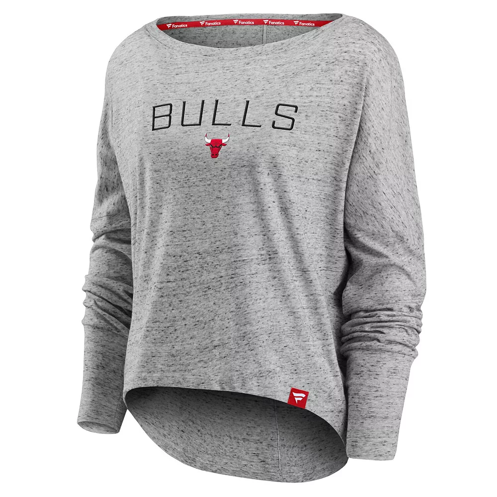 Bare your Chicago Bulls spirit with this Nostalgia T-shirt from Fanatics Branded. It features an off-the-shoulder design and Chicago Bulls graphics printed on heathered fabric. The longer hem also provides a more comfortable fit.