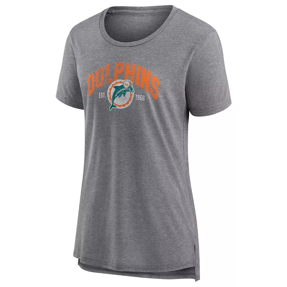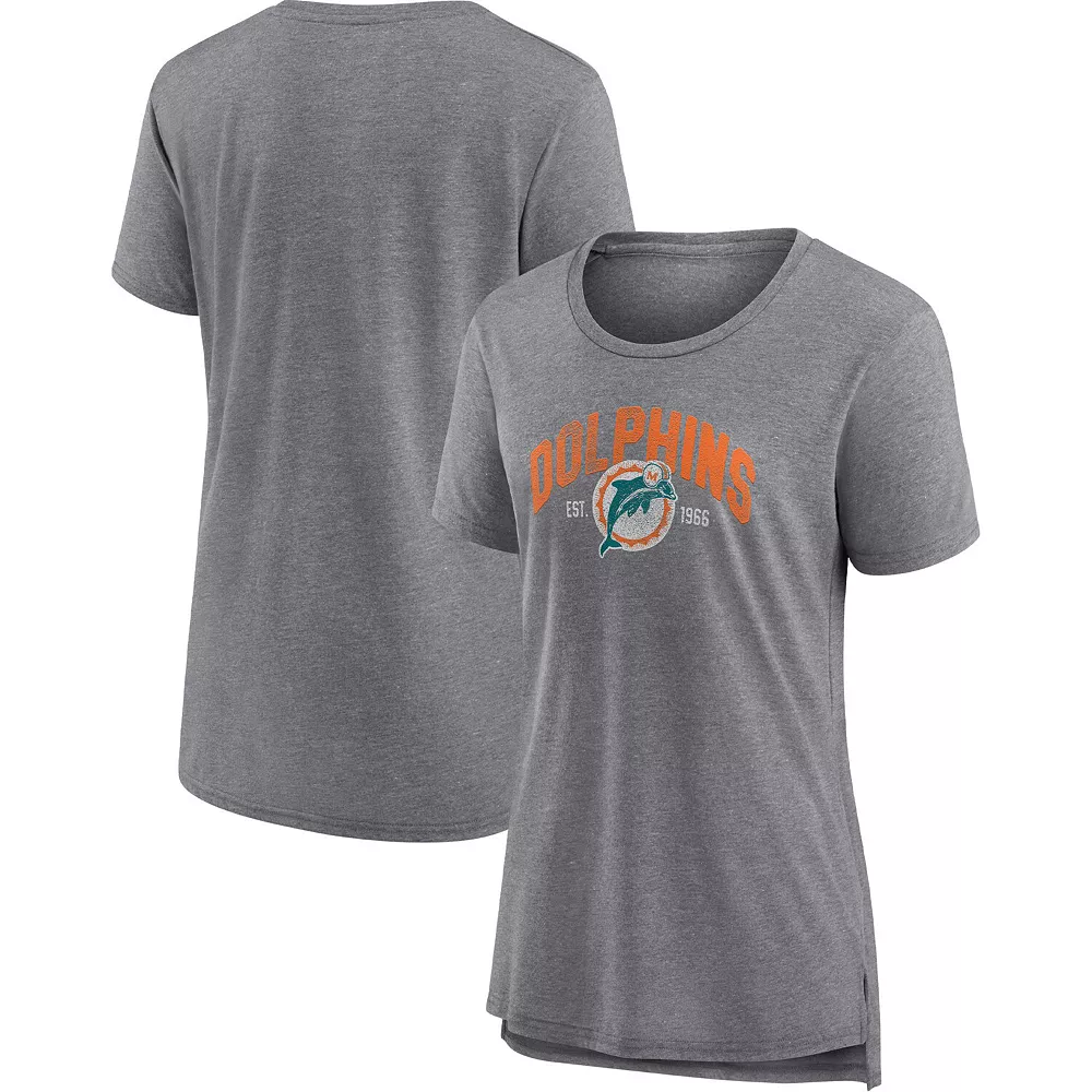 Express your deep devotion to the Miami Dolphins with this Drop Back Modern T-shirt from Fanatics Branded. It features Miami Dolphins graphics printed in a vintage design on heathered fabric. The longer, split hem also creates a more comfortable fit and feel.
