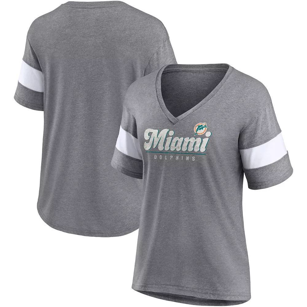 Symbolize your lifelong devotion to the Miami Dolphins with this Give It All Half-Sleeve T-shirt from Fanatics Branded. It features Miami Dolphins graphics printed in a vintage design on heathered fabric. The V-neck also adds a touch of style to this comfy tee.