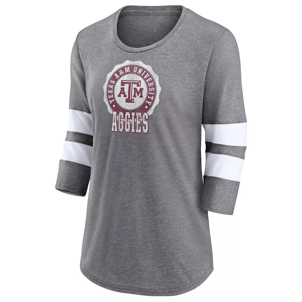 Put eyes on your Texas A&M Aggies fandom by sporting this Fanatics Branded Drive Forward T-shirt. It features comfy three-quarter sleeves and soft tri-blend fabric. In addition, the distressed Texas A&M Aggies graphics are printed in a vintage design for a stylish piece of fan gear.