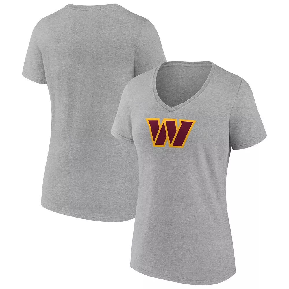 Let everyone know you cheer for the Washington Commanders by wearing this Primary Logo T-shirt from Fanatics Branded. It features official Washington Commanders graphics printed on heathered fabric. The V-neck also gives this everyday tee a stylish touch.