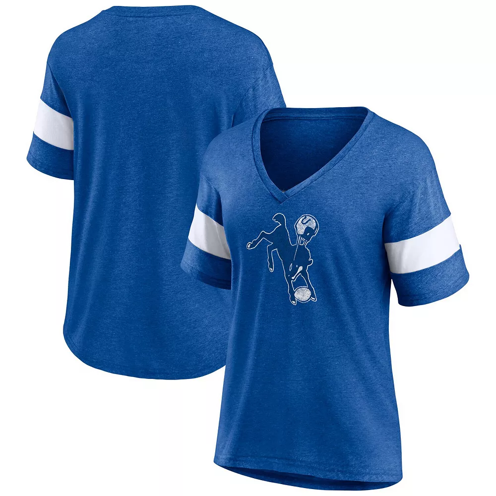 Represent your Indianapolis Colts in a vintage fashion with this Fanatics Branded V-neck T-shirt. Tri-blend fabric makes this tee super-soft to the touch. Plus, the throwback Indianapolis Colts logo is highlighted by contrasting sleeve stripes.