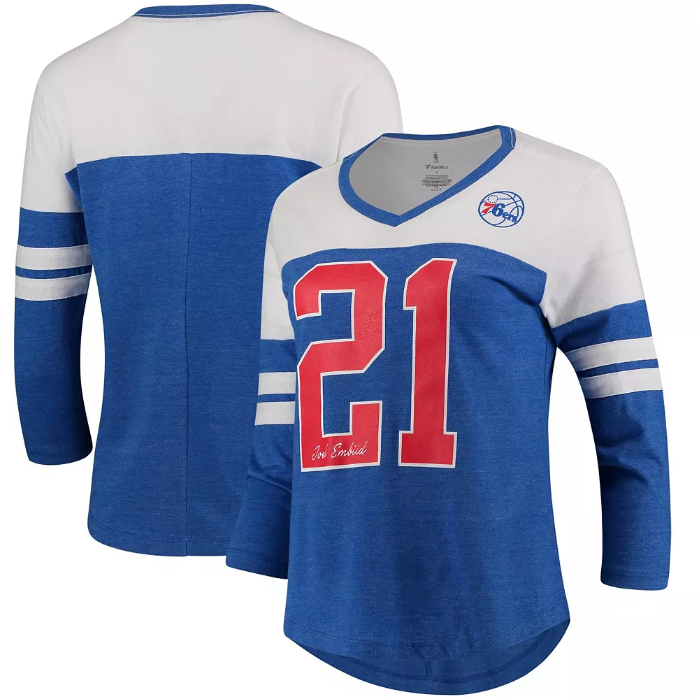 Wear your Philadelphia 76ers enthusiasm proudly when you get this Joel Embiid Starstruck Name and Number tri-blend 3/4-sleeve V-neck T-shirt from Fanatics Branded.