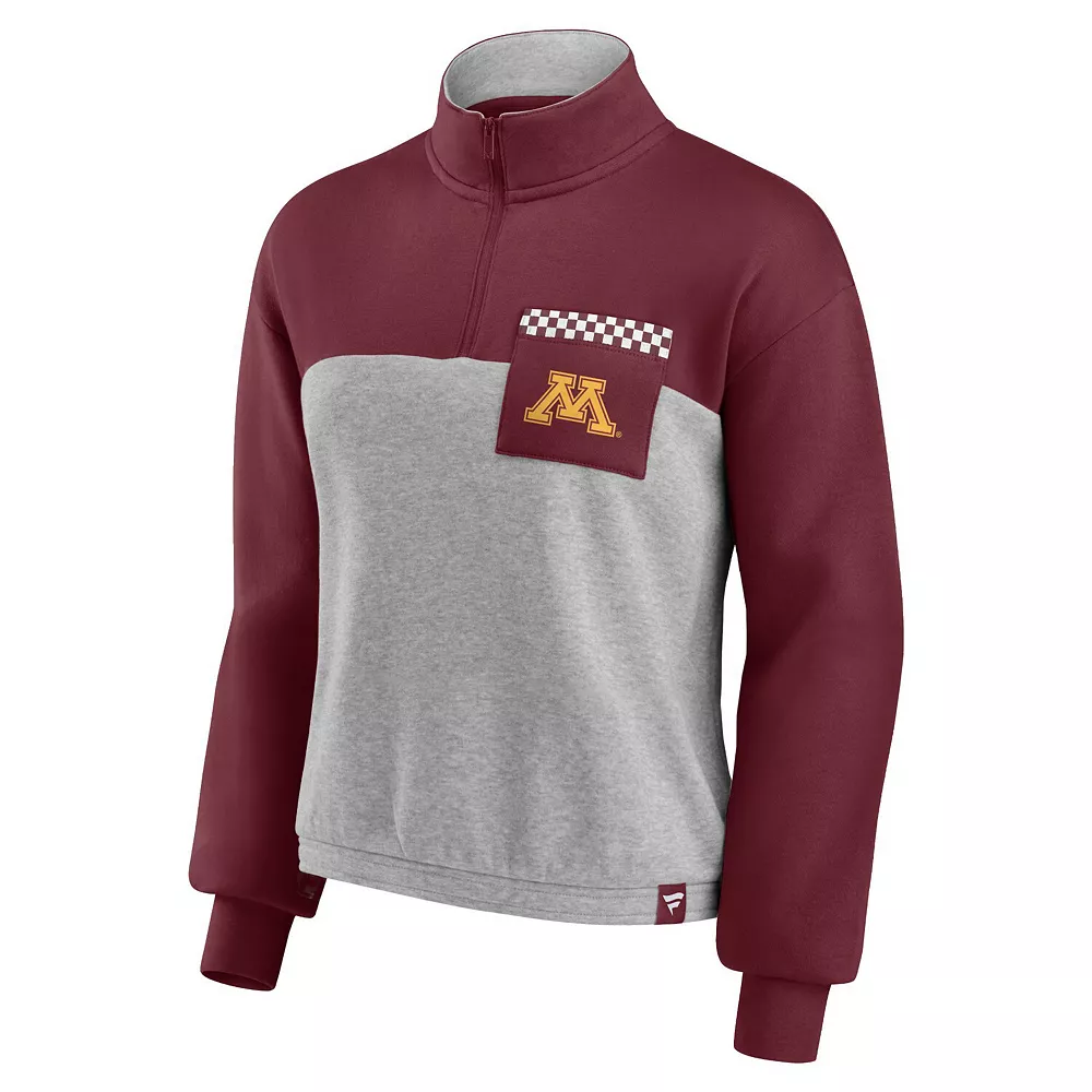 This Sideline to Sideline Colorblock quarter-zip jacket from Fanatics Branded helps you keep your Minnesota Golden Gophers fandom at the forefront, even when you need to add extra layers. Bold colors and a team logo on the left chest pocket add a touch of flair to your Minnesota Golden Gophers outerwear collection. This midweight jacket features fleece lining for added warmth and flatlock stitching for a cleaner look on game day.