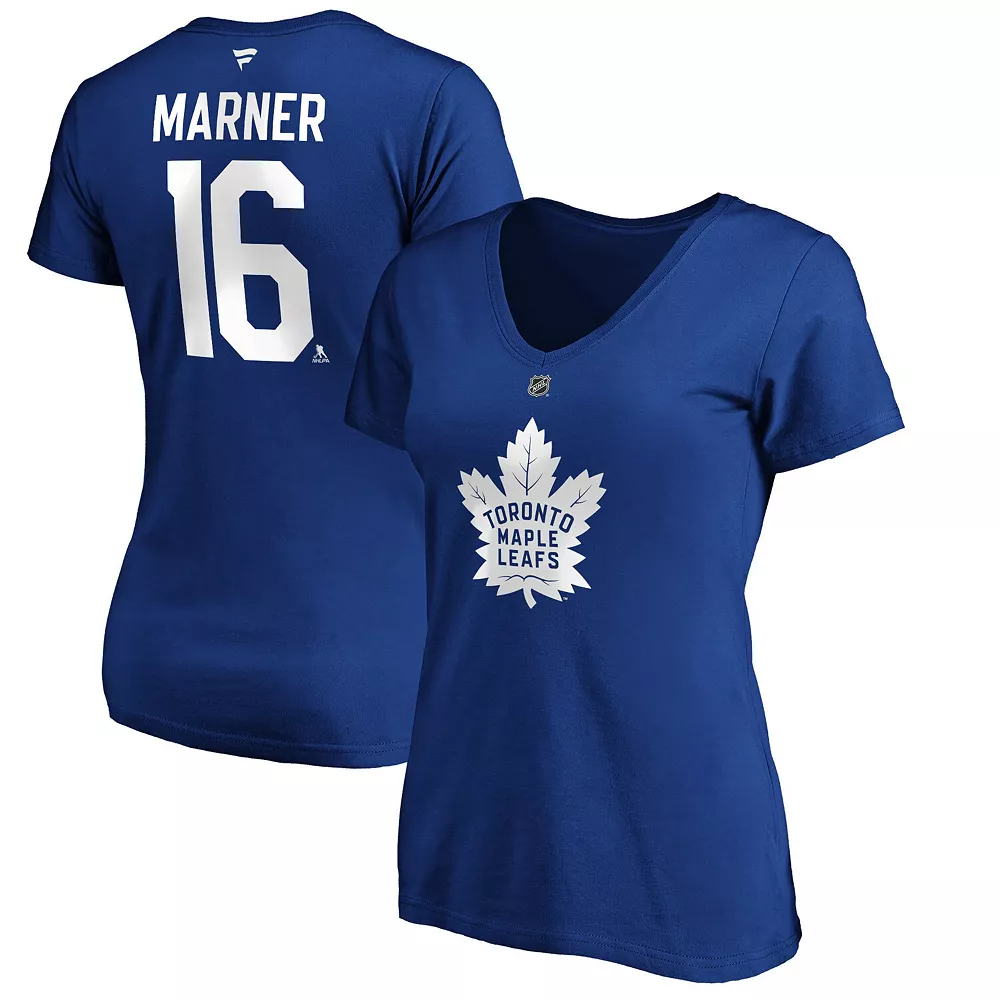 Your die-hard loyalty to the Toronto Maple Leafs is unmatched by anyone. Now you can put your fandom over the top when you get this Mitchell Marner Toronto Maple Leafs Team Authentic Stack Name and Number V-neck T-shirt. This Fanatics Branded tee features distinctive Toronto Maple Leafs graphics on the front and back, perfect for wearing at a home game or around town.