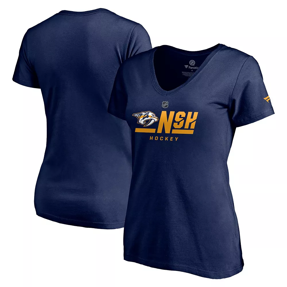 Add this fresh Fanatics Branded V-neck T-shirt to your collection of Nashville Predators gear. The soft cotton fabric and relaxed fit make this tee an instant game day favorite. Plus, it’s designed after the apparel you might see players and coaches wearing, so the bold Nashville Predators design leaves no doubt to your team loyalty.