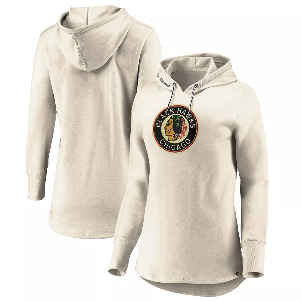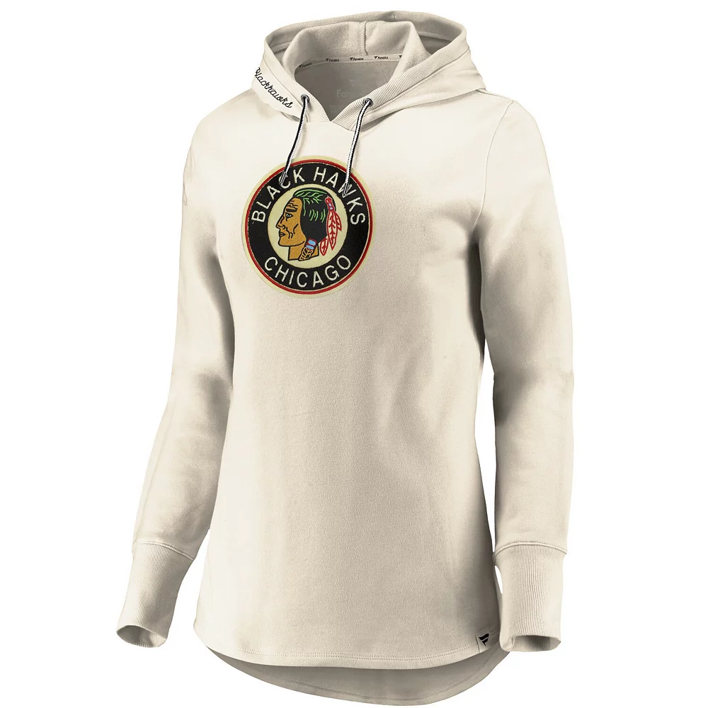 You love to sport classic Chicago Blackhawks gear whenever it gets chilly outside. This True Classics Signature fleece pullover hoodie from Fanatics Branded will help you do just that. With vintage Chicago Blackhawks graphics across the chest and along the hood, this pullover will enhance your ensemble effortlessly.