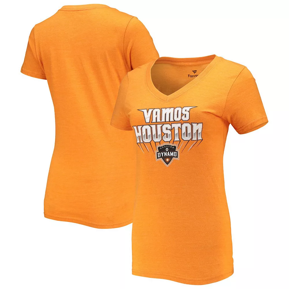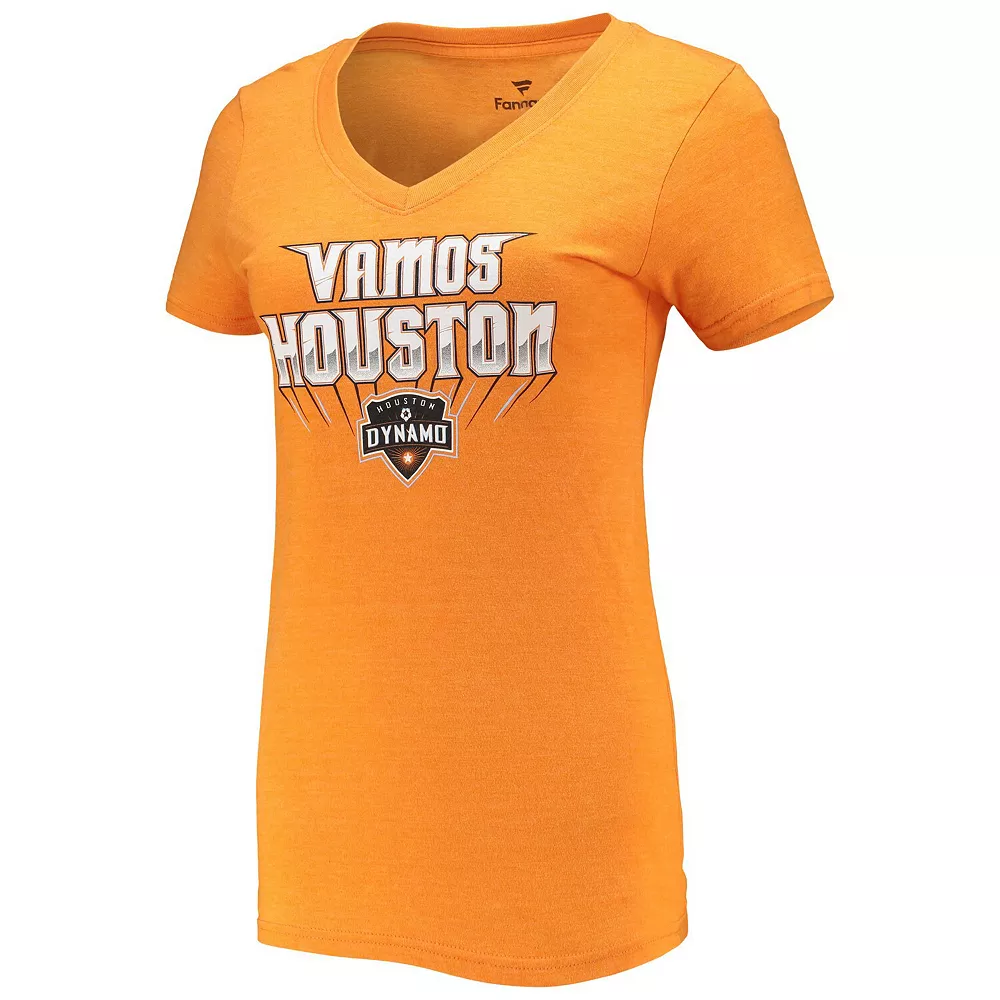 This Vamos Tri-Blend V-Neck T-Shirt allows fans to keep casual while repping their Houston Dynamo FC pride. Featuring bold Houston Dynamo FC graphics, this Fanatics Branded tee is the perfect way for any wearer to showcase where their loyalties lie.