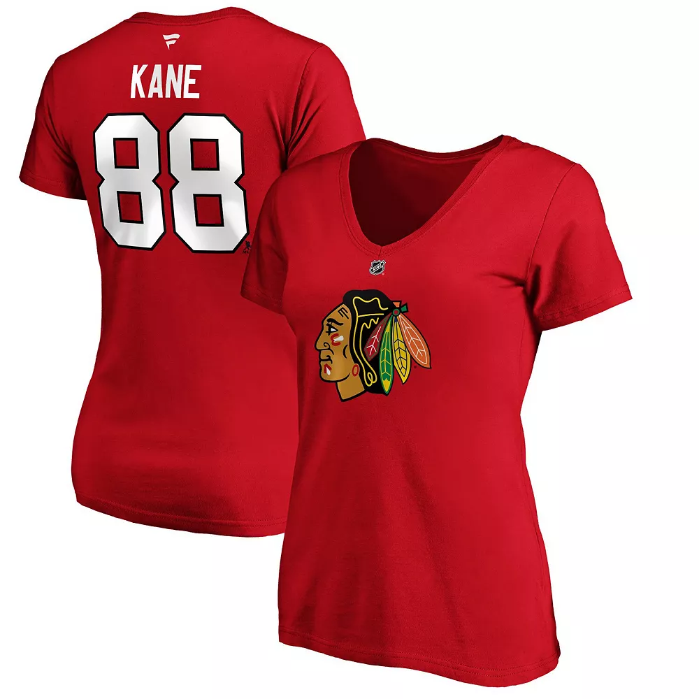 Your die-hard loyalty to the Chicago Blackhawks is unmatched by anyone. Now you can put your fandom over the top when you get this Patrick Kane Chicago Blackhawks Team Authentic Stack Name and Number V-neck T-shirt. This Fanatics Branded tee features distinctive Chicago Blackhawks graphics on the front and back, perfect for wearing at a home game or around town.