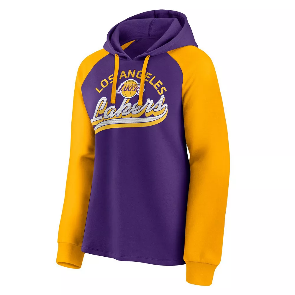 Cozy up for the Los Angeles Lakers season with this Fanatics Branded Record Holder Colorblock hoodie. This pullover has bold team graphics on the chest for a vibrant look and raglan sleeves for a fuller, snug fit. Perfect for a chilly game day, this Los Angeles Lakers hoodie shows off where comfort meets fashion.