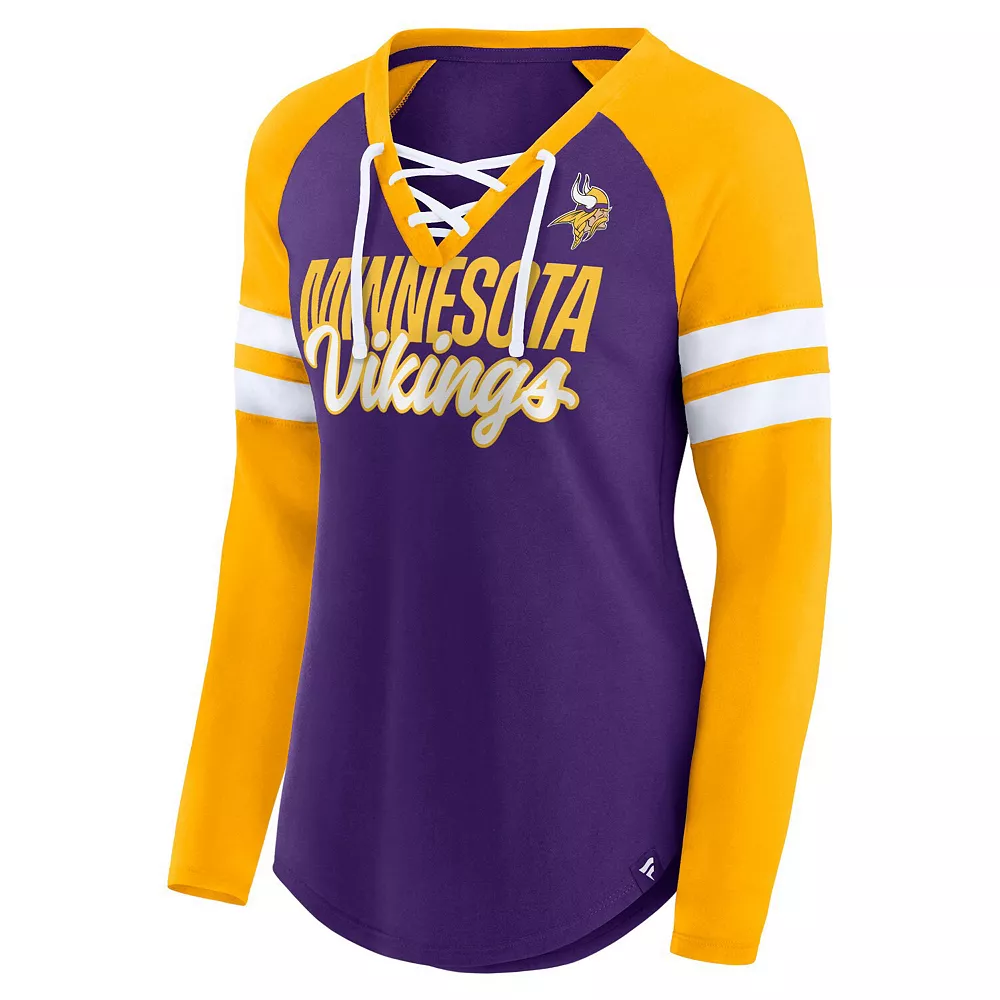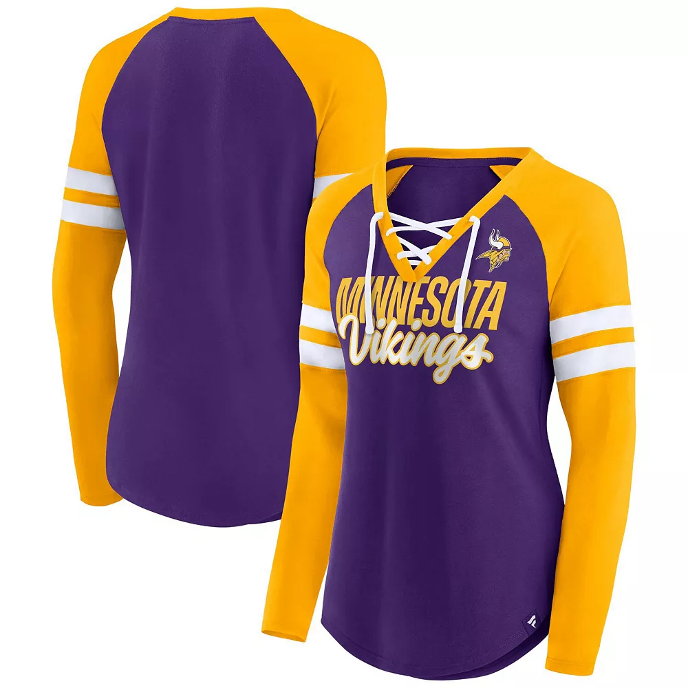 Wear your favorite team’s colors loud and proud with this Minnesota Vikings True to Form T-shirt from Fanatics Branded. It features a sporty lace-up V-neckline and Minnesota Vikings graphics accentuated by the contrasting stripes. Plus, raglan sleeves provide a little extra arm room for better movement.
