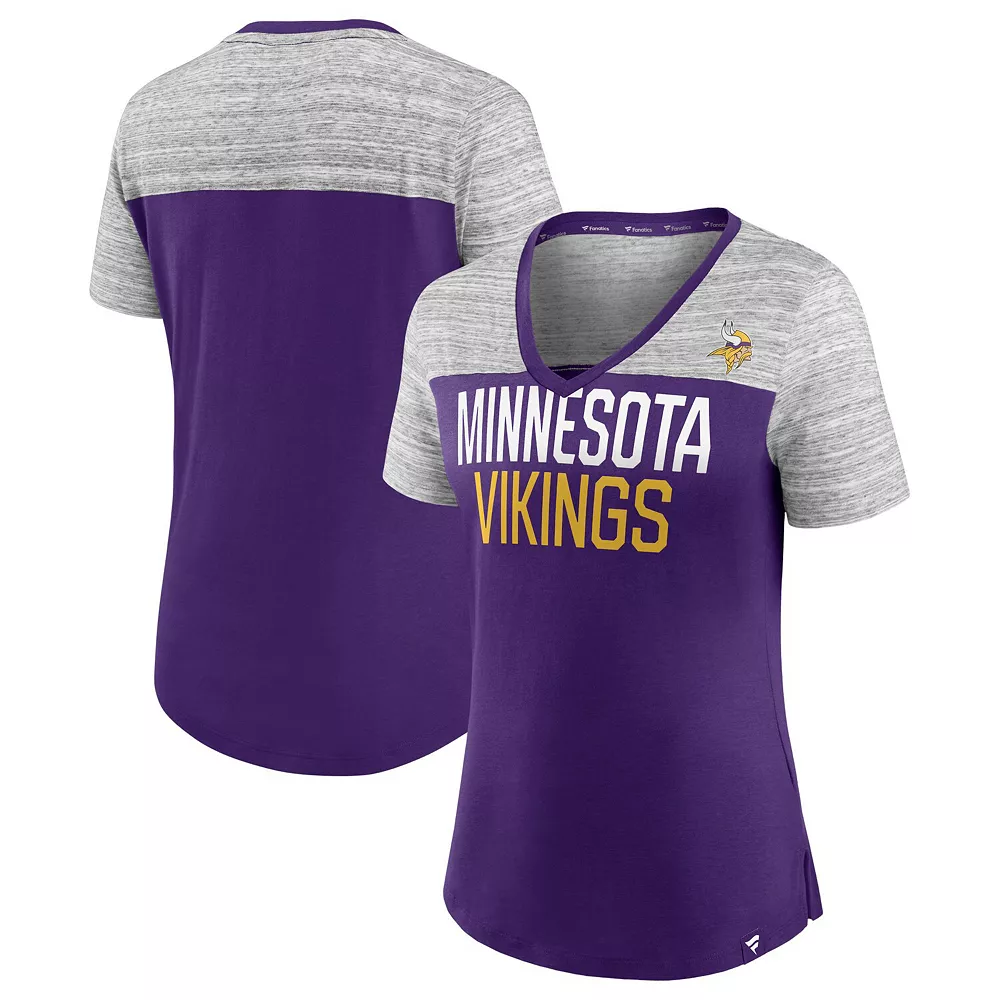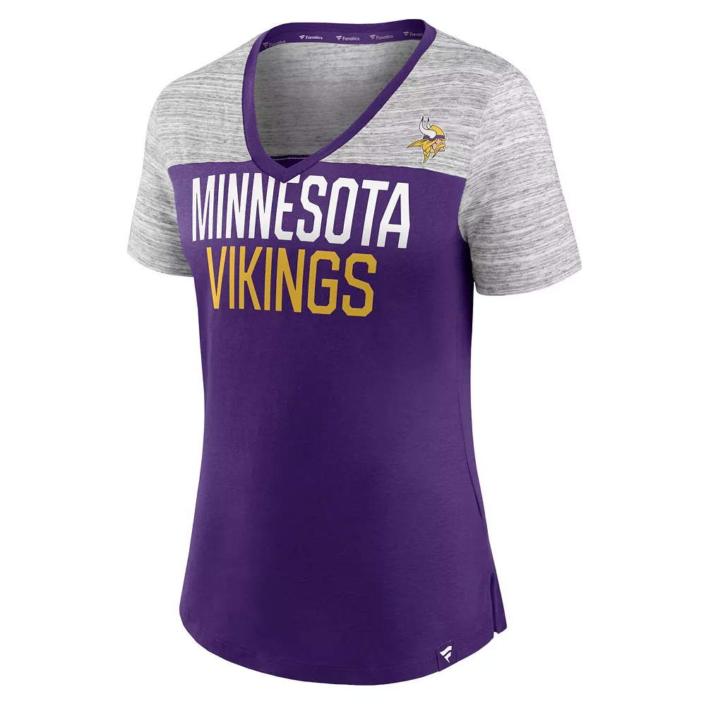 Get the Minnesota Vikings game day look you’re after by grabbing this Fanatics Branded Close Quarters V-neck T-shirt. Featuring a two-tone design and bold graphics printed across the chest, this tee effortlessly illustrates your unwavering loyalty to the Minnesota Vikings.