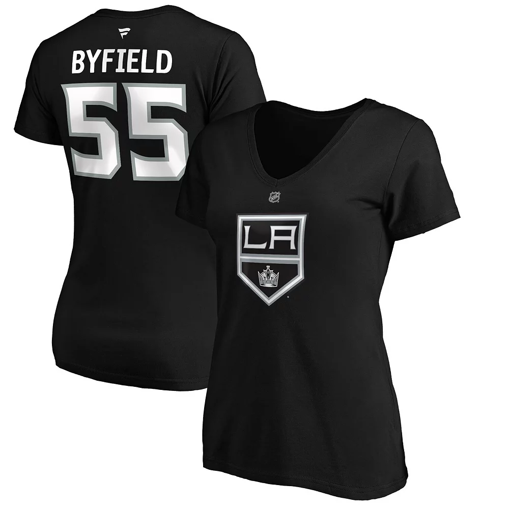 Quinton Byfield is your favorite player, and for good reason. Show him your support by grabbing this Los Angeles Kings Authentic Stack Name & Number V-Neck T-Shirt from Fanatics Branded. It features bold Los Angeles Kings and Quinton Byfield graphics, so no one will be able to question where your allegiance lies every time you rock this sweet gear.