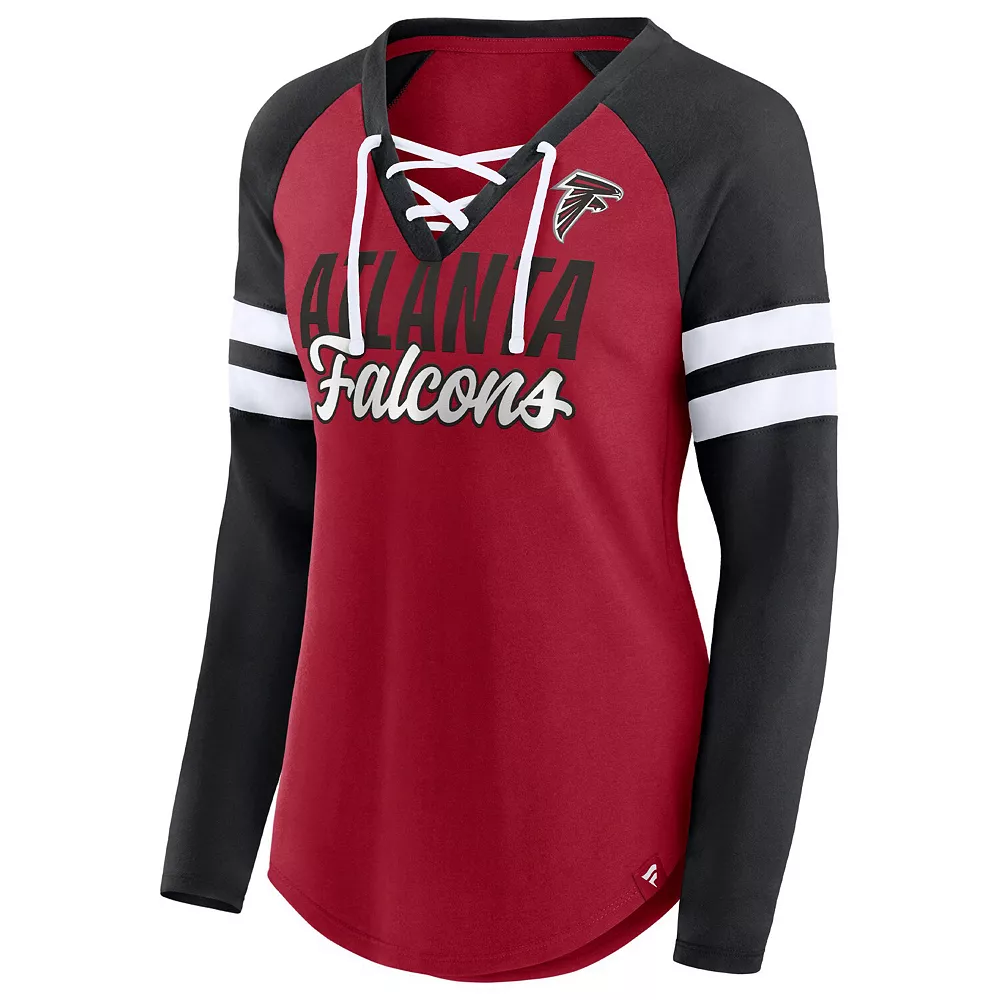 Wear your favorite team’s colors loud and proud with this Atlanta Falcons True to Form T-shirt from Fanatics Branded. It features a sporty lace-up V-neckline and Atlanta Falcons graphics accentuated by the contrasting stripes. Plus, raglan sleeves provide a little extra arm room for better movement.