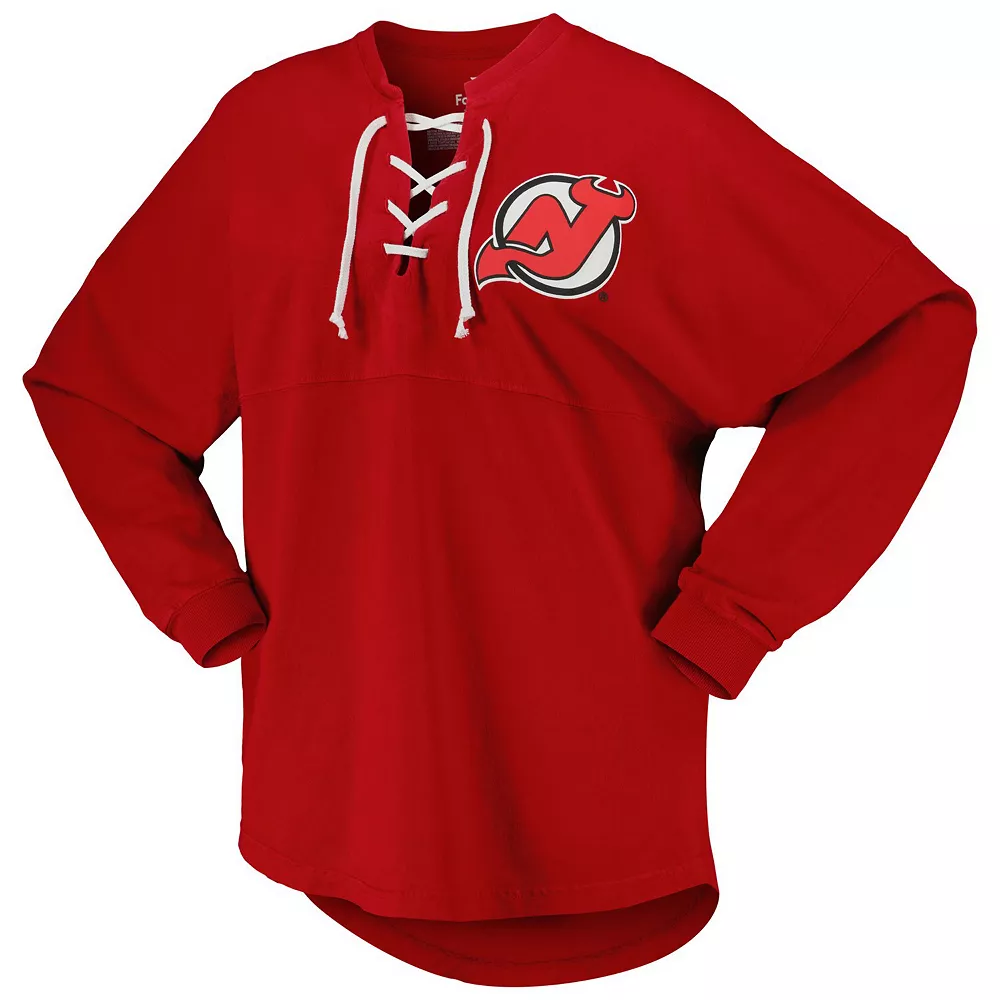 Boost your collection of official New Jersey Devils gear with this Spirit jersey T-shirt from Fanatics Branded. It features a lace-up V-neckline and dropped shoulders, ensuring that you’ll be the most stylish fan on game day. The low-puff graphics on this cotton tee make it clear that your loyalty to the New Jersey Devils is second to none.