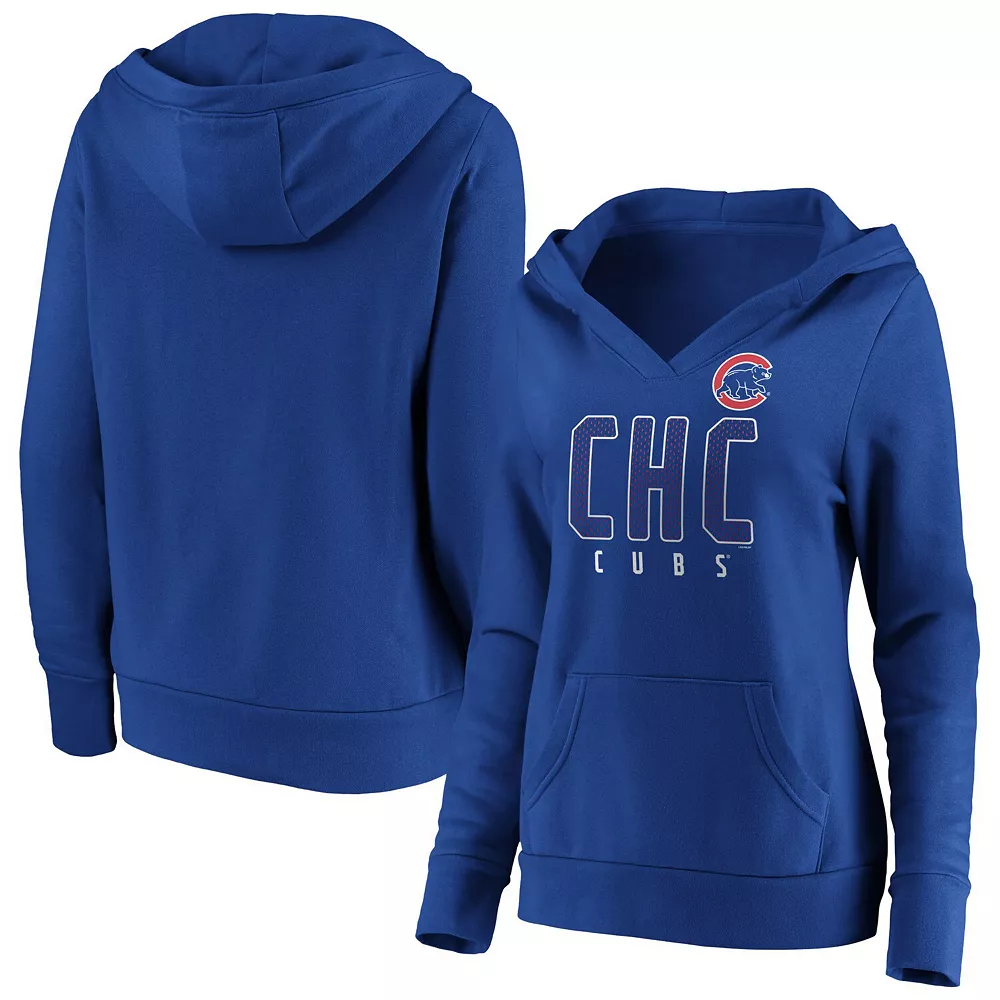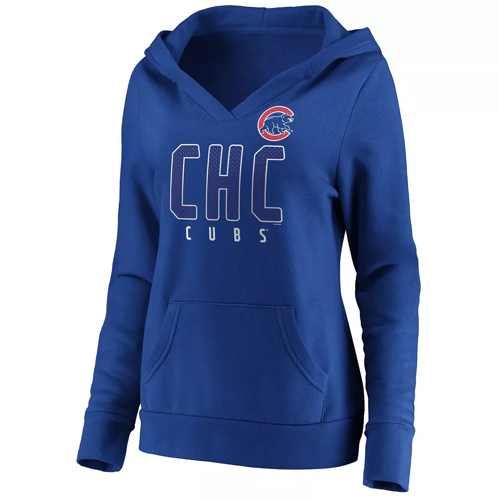 When the weather cools down, keep your Chicago Cubs devotion in play with this Scoreboard V-neck pullover hoodie from Fanatics Branded. It features the Chicago Cubs logo and name printed in a noticeable format. The roomy hood and classic front pouch pocket will also help keep your team spirit warmed up.