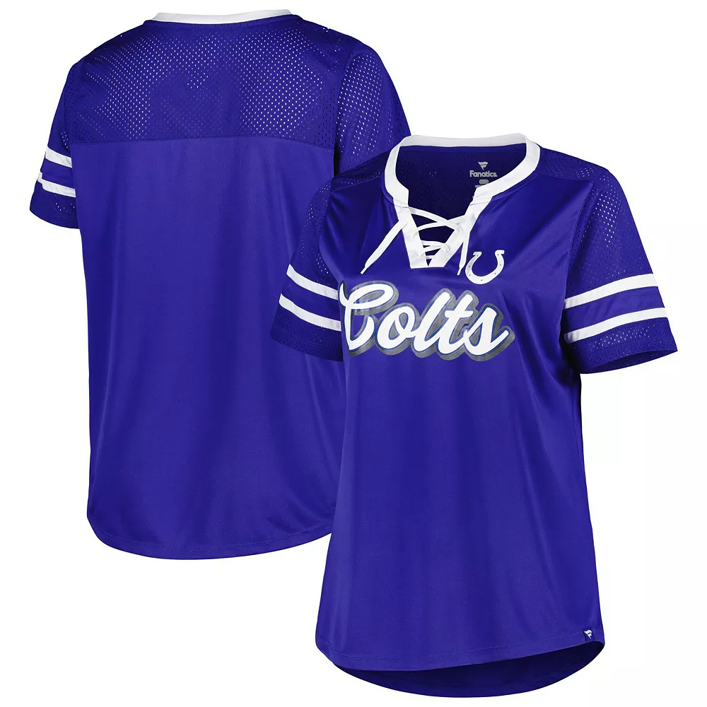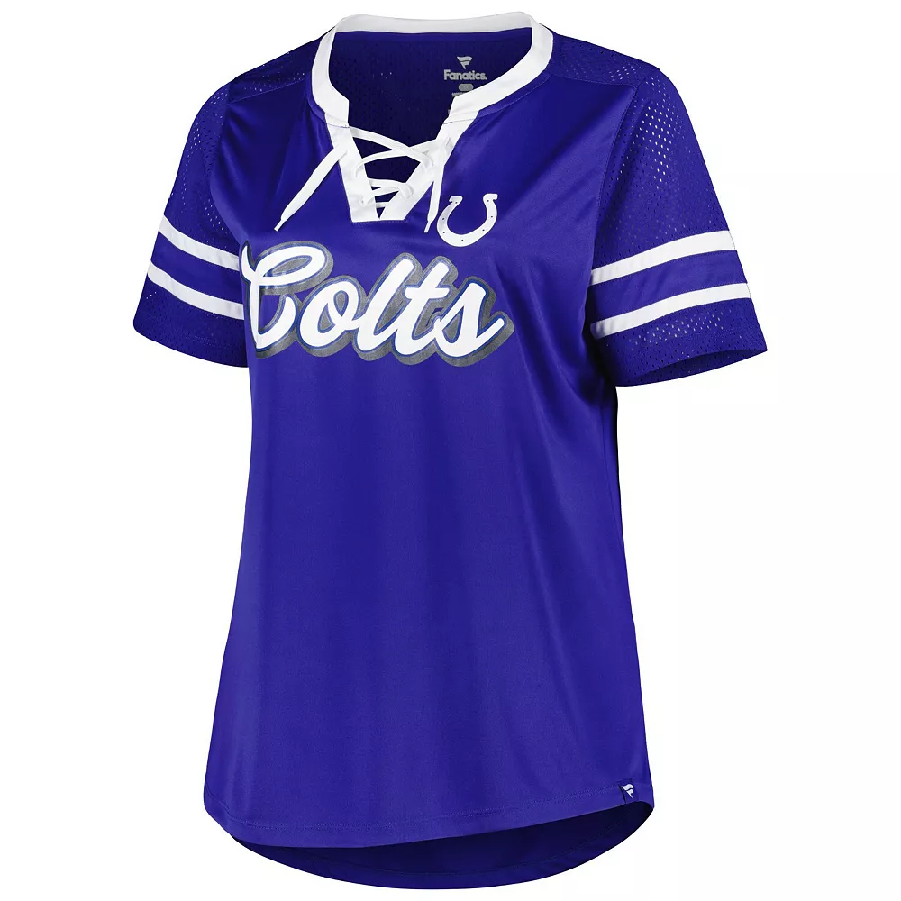 Gear up in Indianapolis Colts style with this Original State T-shirt. It features a unique lace-up neck and sewn-on stripes for added detail. The sleek team graphics across the front make this Fanatics Branded tee a must-have for any Indianapolis Colts game.