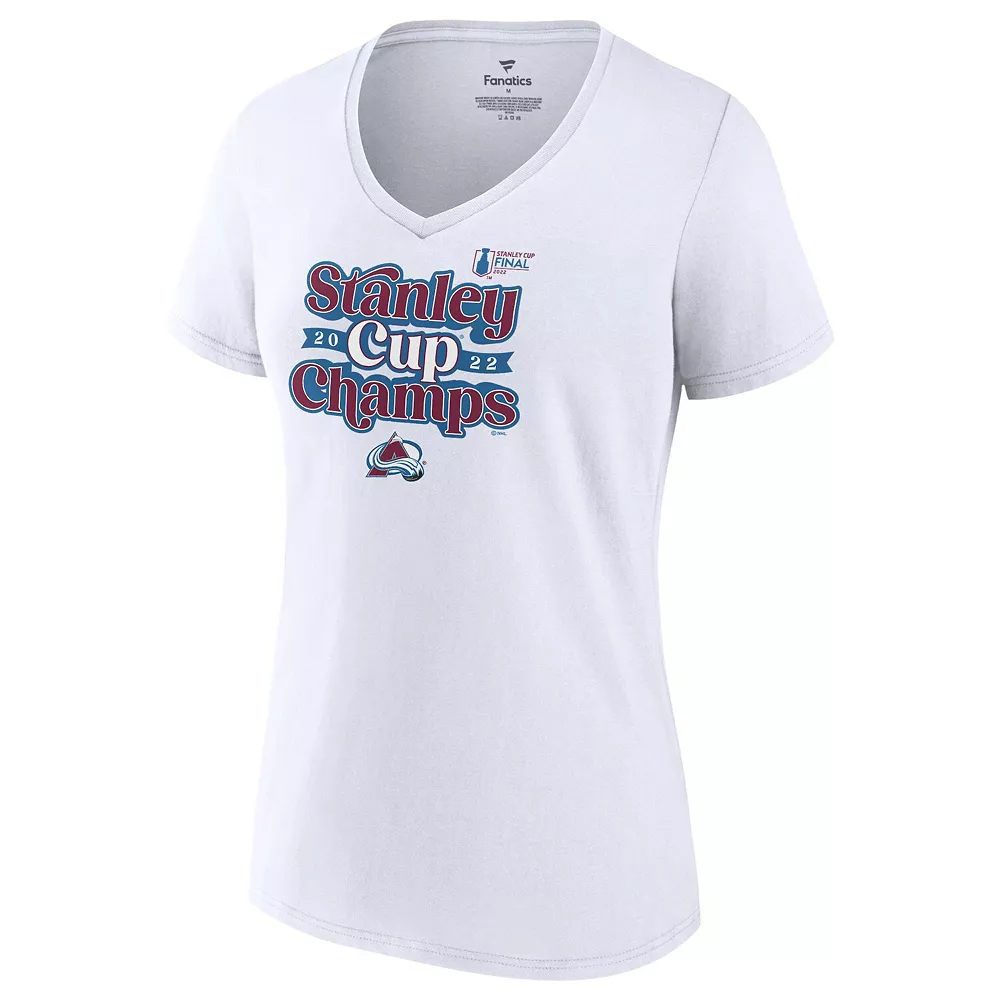 After an exhilarating NHL season, the Colorado Avalanche have claimed the ultimate title: 2022 Stanley Cup Champions! Celebrate your team being crowned the best in the league by grabbing this Saucer Pass V-Neck T-Shirt from Fanatics Branded. It features commemorative graphics that will remind you of every slapshot, power play, and epic breakaway that led to this incredible moment in Colorado Avalanche history.