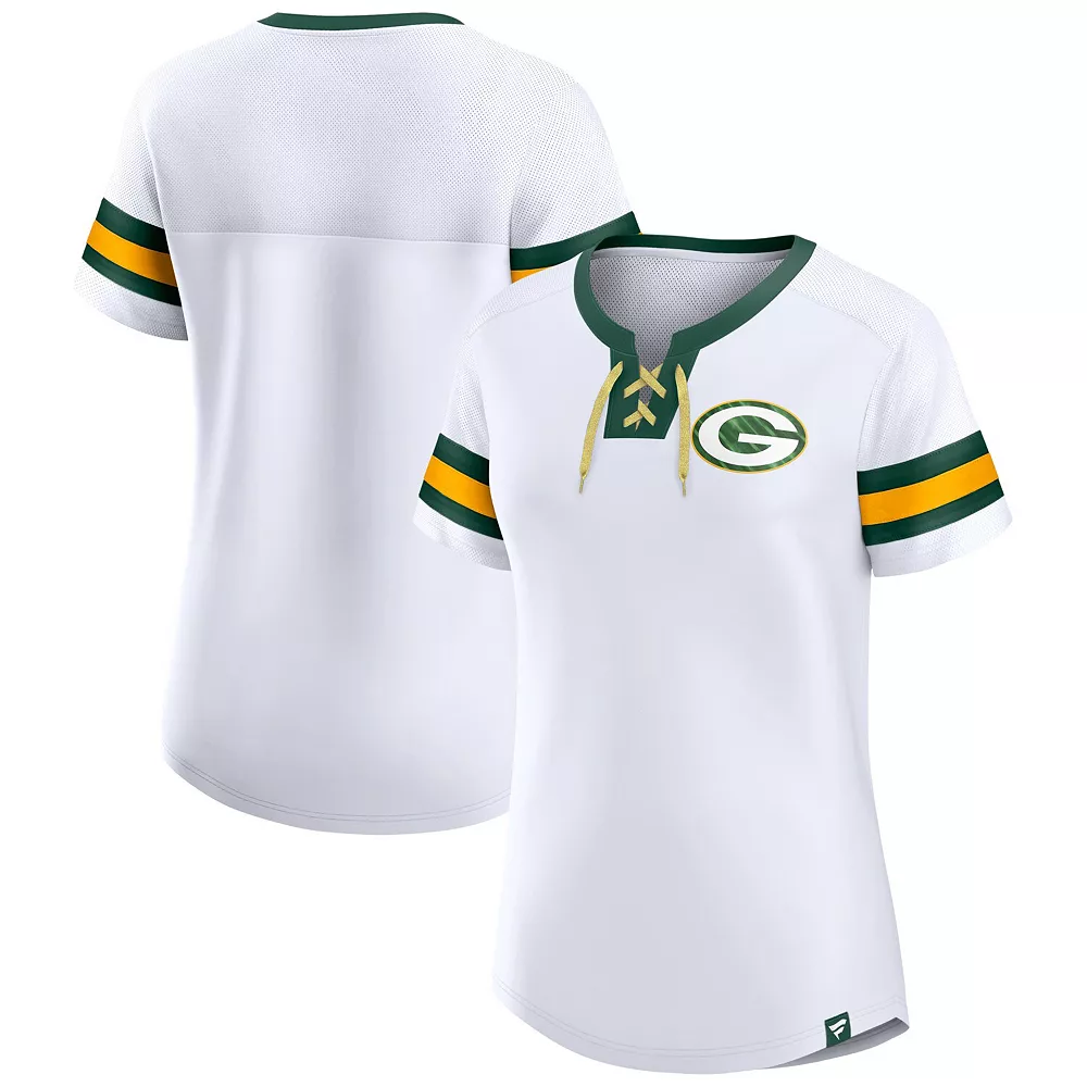 Feel your best on Green Bay Packers game day in this Sunday Best Lace-Up T-shirt from Fanatics Branded. The drawstrings and mesh panels on the shoulders and sleeves offer your desired fit and comfortability during every wear. Team graphics on the chest put your Green Bay Packers fandom front and center.