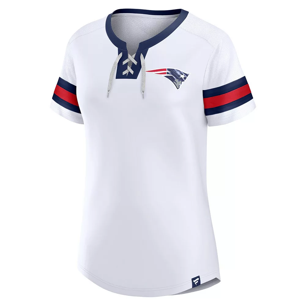 Feel your best on New England Patriots game day in this Sunday Best Lace-Up T-shirt from Fanatics Branded. The drawstring and mesh panels offer your desired fit and comfort during every wear. Team graphics on the chest put your New England Patriots fandom front and center.