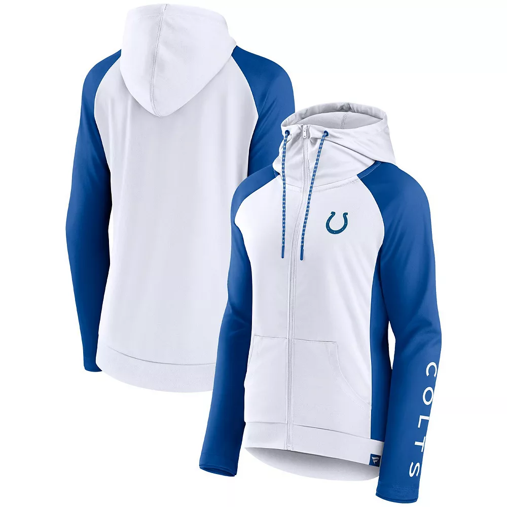 This End Around full-zip hoodie from Fanatics Branded is a great way to show your devotion to the Indianapolis Colts in inclement weather. Featuring a scuba hood, drawstrings and a zipper that extends to the chin, this jacket keeps you protected from the elements. In addition, the raglan sleeves allow for ease of mobility, and the two front pockets provide a warm haven for your hands on cold Indianapolis Colts game days.